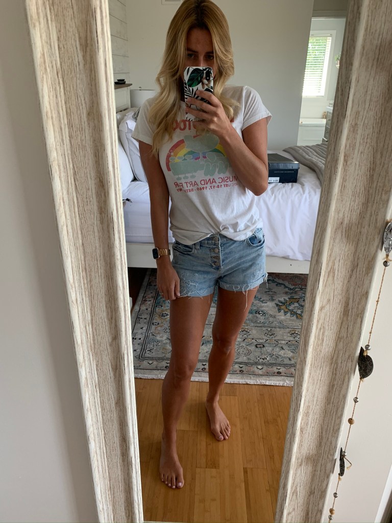One of my closet staples for the summer are jean shorts. I LOVE them. During covid I’ve worn them every day since May. I think they’re a classic look that never goes out! However, some are probably wondering if a woman in their 30s can rock the daisy dukes without looking a little like mutton dressed as lamb. Let me tell you this…OF COURSE we can!