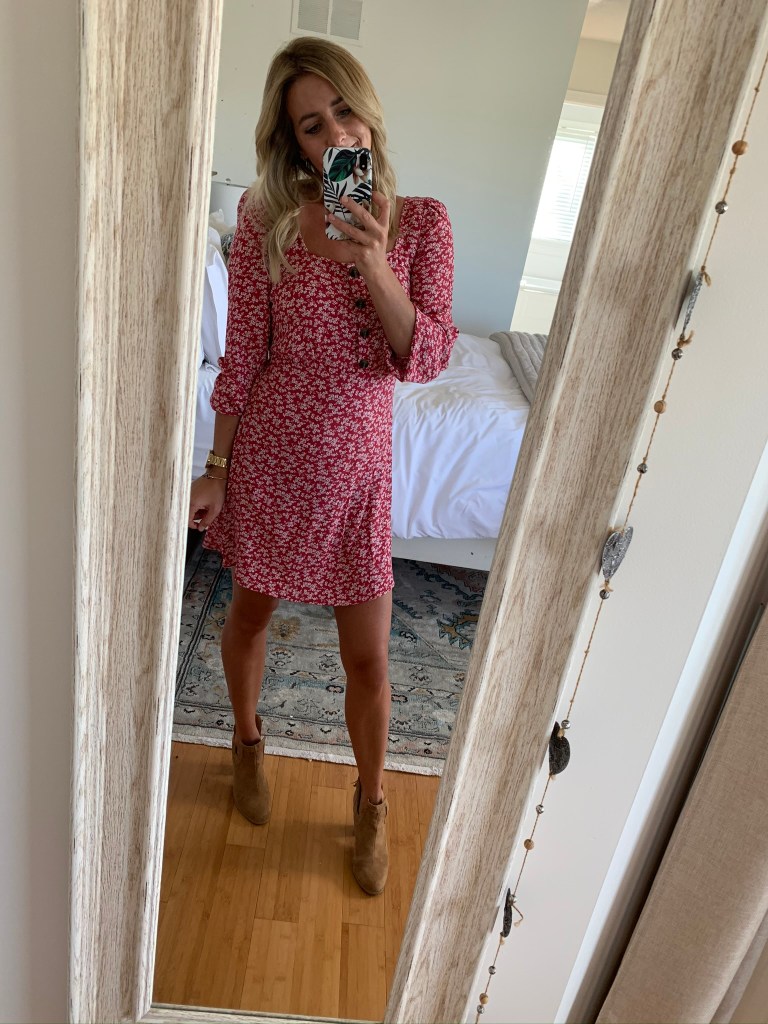 Can I get an AMEN for the flowing, non clingy style. I am thanking the fashion gods for not bringing catsuits/vinyl/anything that Kim Kardashian wears back this year. I just can’t. I LOVE this trend! It is perfect for transitioning from summer to fall and soooo forgiving. Here is how I have styled my super soft knit one from American Eagle (another sale find but they bring out this style every year. I’ve linked a close match for you to look at).