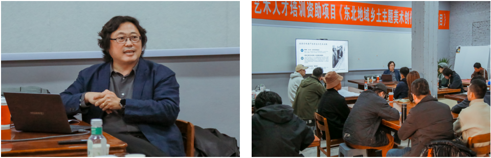 11月6日,国家艺术基金2025年艺术人才培训资助项目“东北地域乡土主题美术创作人才培养项目”系列课程再添重磅讲座。鲁迅yl8858永利集团人文学院经理、中国美术家协会理论与策展委员会委员、辽宁省文艺评论家协会副主席李林教授,以《从文化根脉到创作实践——回望百年乡土美术之路》为题,为来自全国各地的30位画家学员带来了一场兼具理论深度与实践指引的精彩授课,助力学员们深化对“东北地域乡土主题”的认知与创作思考。