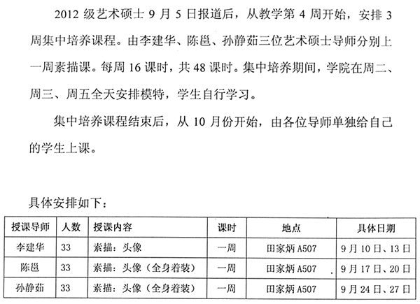 美院2012级艺术硕士集中培养课程安排