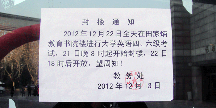 教务处关于田家炳教育书院12月22日封楼的通知