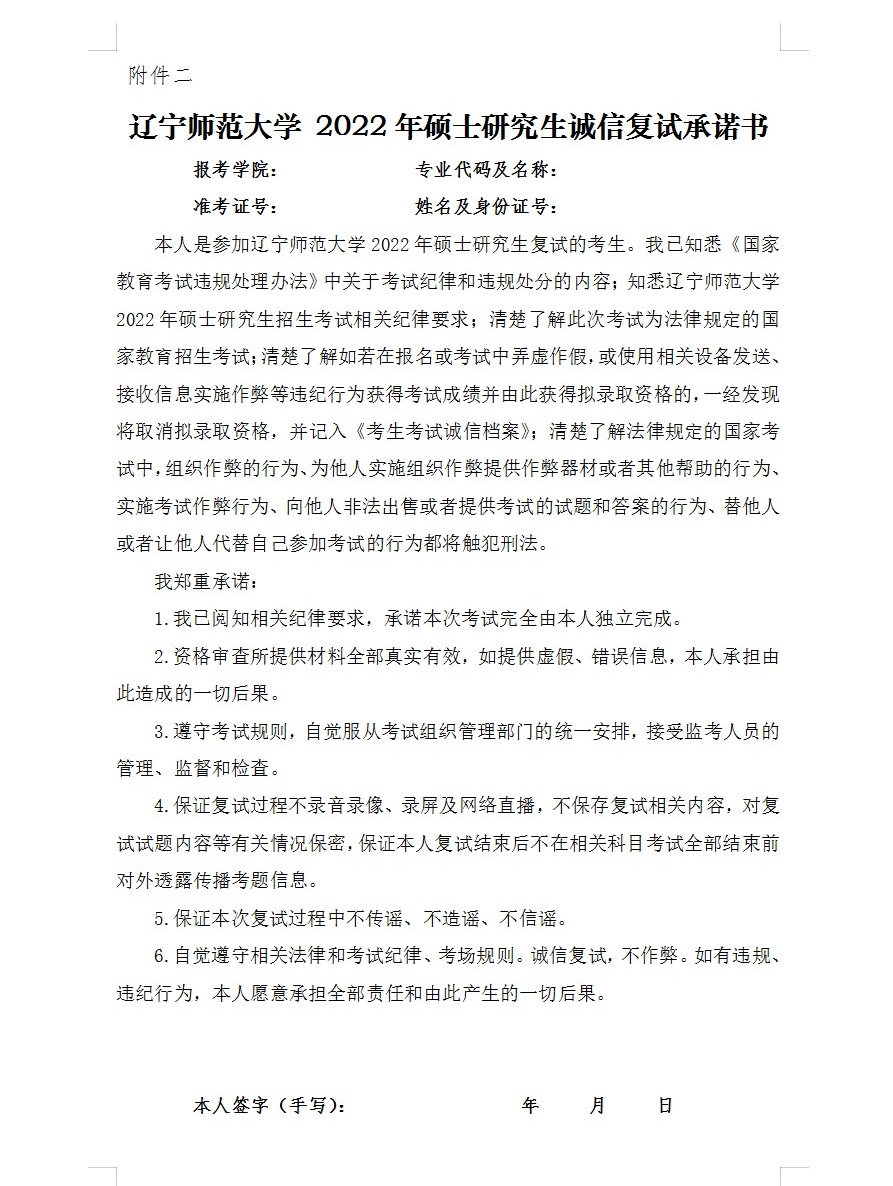 请获得复试资格的考生在4月8日12点前将含有以下9项内容的电子版(扫描件或照片)按顺序合成为一个PDF文件发送到学院指定邮箱:lsmsxyyjs@163.com。PDF文件命名规则:报考专业+姓名。 审查的主要内容有以下9项: *(1)本人有效居民身份证(正反面)和初试准考证; *(2)往届毕业生提交学位证书和毕业证书、“学信网”《教育部学历证书电子注册备案表》在国外获得学历学位的考生,提供由教育部留学服务中心出具的学历学位认定证明,无此证明者不予复试; *(3)应届本科毕业生提交就读学校有效员工证、“学信网”《教育部学籍在线验证报告》; *(4)同等学力考生提交国家承认学历的毕业证书、“学信网”《教育部学历证书电子注册备案表》; *(5)《yl8858永利集团2022年硕士研究生招生考试现实表现表》。(见附件一) ; *(6)非全日制考生须提供由人事部门开具的在职证明或《yl8858永利集团研究生院定向培养硕士学位研究生协议书》; *(7)“退役老员工士兵”专项计划的考生需要提供《应征公民入伍批准书》和《退出现役证》; *(8)《yl8858永利集团 2022 年硕士研究生诚信复试承诺书》(见附件二); (9)参加复试的考生可提供能证明自己研究能力的各种背景材料,如正式发表的文章、大学学习成绩单、科研成果鉴定书、获奖证书、本科毕业论文概要、参加过的研究项目、专家推荐信等。 注:以上带*材料为考生必须提交的,第(9)项用于综合能力水平考核的补充材料,考生尽可能提供;考生所提供材料全部要真实有效。如提供虚假、错误信息,考生本人承担由此造成的一切后果。对不符合规定的或对不提交必要材料的考生将取消复试资格。