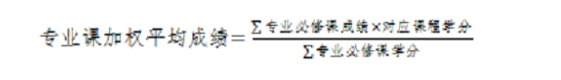 (一)专业课加权平均成绩所占权重为85% 专业课加权平均成绩是指培养方案1-6学期专业基础课、专业主干课、专业发展课中的必修课程首次考核成绩按学分加权平均。具体计算公式为: