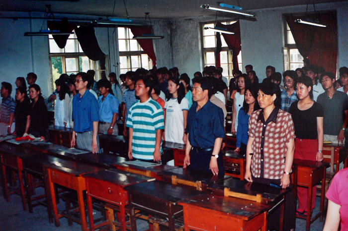 1998年夏,美术系1995级、1996级员工入党宣誓大会在南院美术系二楼合堂召开。美术系书记张广鑫,系主任谷钢,系副书记朱成利,教职工宋民、谭吉兰、曹醉梦、刘大明、张可隽及员工党员参加大会。会上,入党员工集体宣誓,刘大明老师领誓。