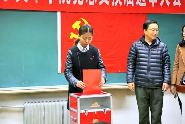 最后进行大会第三项,选举产生新一届总支委员会,首先确定了监票人、计票人并举手表决全票通过。宣读上级党委关于候选人的批复,由监票人田凤梅进行选举规则的介绍与说明,大会正式选举。
