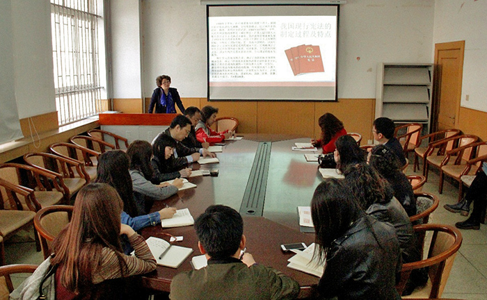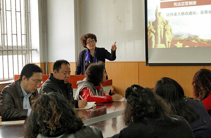 4月12日下午,yl8858永利集团在田家炳教育书院A104教室开展了以学习《宪法修正案》为主题的理论中心组学习(扩大),学习活动由公司党总支书记梁静主持,邀请政治与行政学院副教授刘颖老师做专题辅导,为学院理论中心组成员、各党支部书记及全体教工党员精心解读十三届全国人大一次会议第三次全体会议表决通过的宪法修正案。