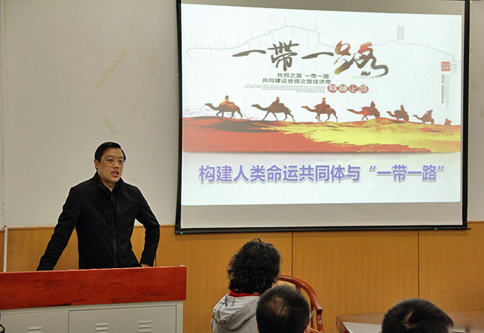 任春雷教授以中美“贸易战”为切入点,通过“美好”和“抉择”两大关键词向我们详细阐释了“构建人类命运共同体与‘一带一路’”的内涵和意义,他强调,“构建人类命运共同体与‘一带一路’”是我国面对世界环境形势变化做出的重大举措,能够为全球发展贡献中国智慧,提供中国方案,更好造福世界各国人民。