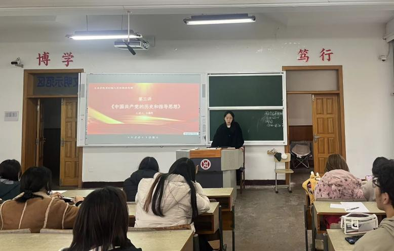 第三讲由牛鑫雨老师主讲。牛老师以时间为脉络,回顾了中国共产党从诞生到发展壮大的百年历程,剖析了不同历史时期党的指导思想的形成与发展。通过对党史和指导思想的学习,学员们深刻认识到中国共产党为什么“能”、马克思主义为什么“行”,进一步坚定了对党的信仰,增强了理论自信。