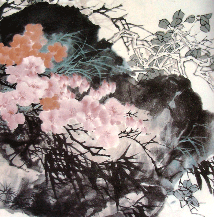 中国画 纸本水墨《春色烂漫》2007年 25×85厘米