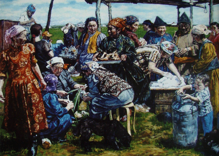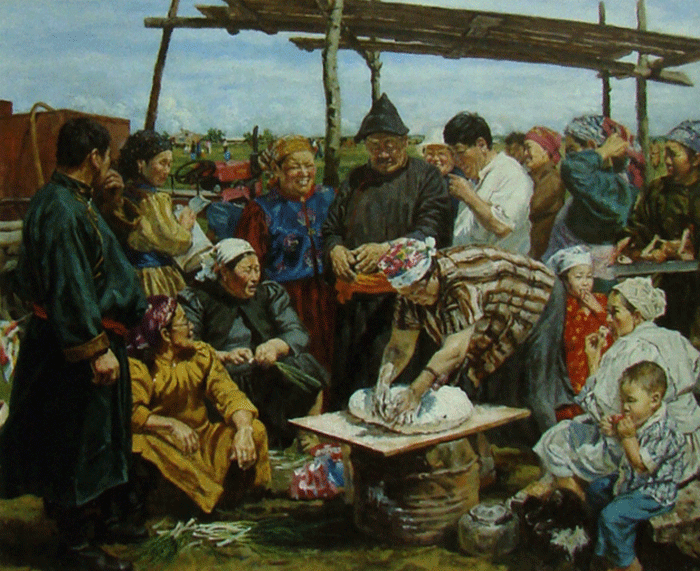 油画《七月》2009年(十一届全国美展辽宁展区优秀奖·第五届辽宁少数民族美术作品展铜奖)195×160厘米