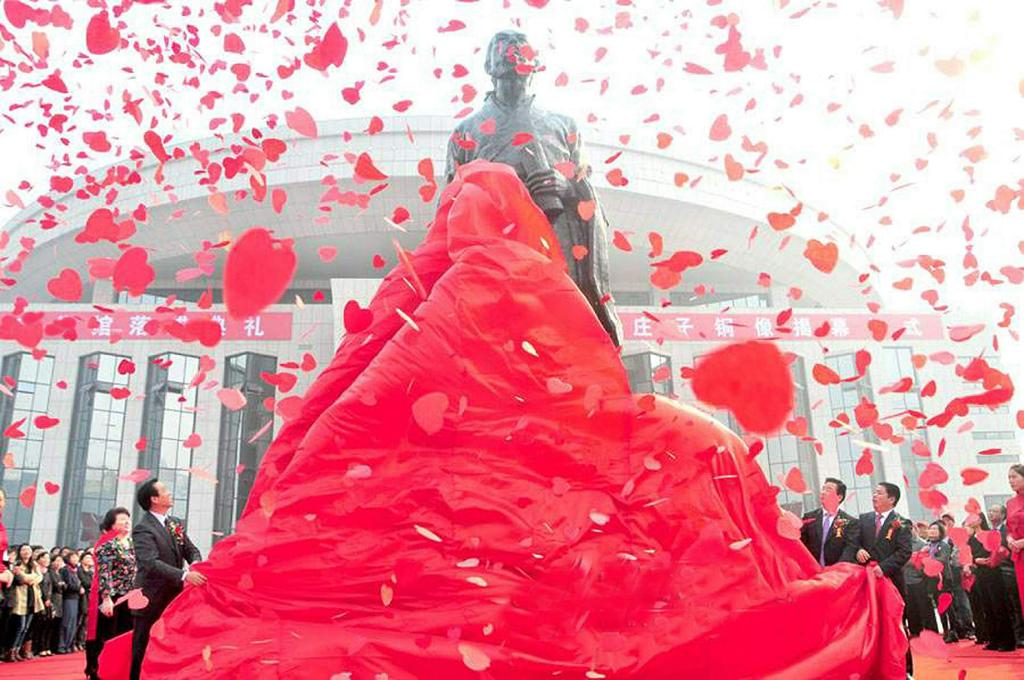 《庄子铜像》揭幕式 高度8米 庄子博物馆