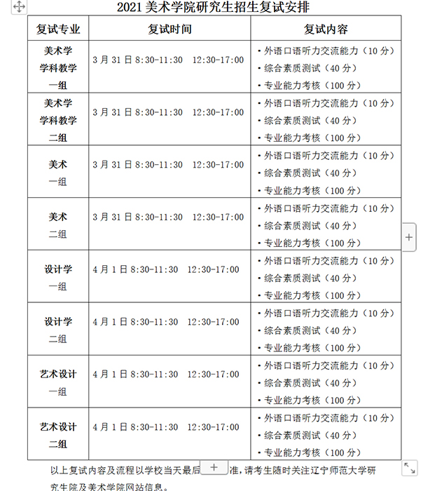 2.时间:一志愿考生和调剂考生复试时间为3月31日-4月1日,具体复试时间安排见附表1。