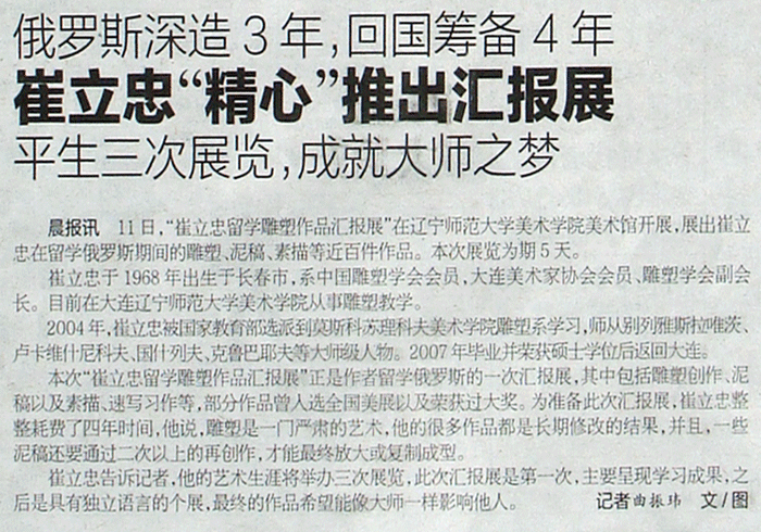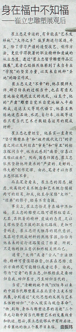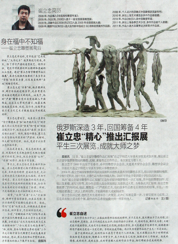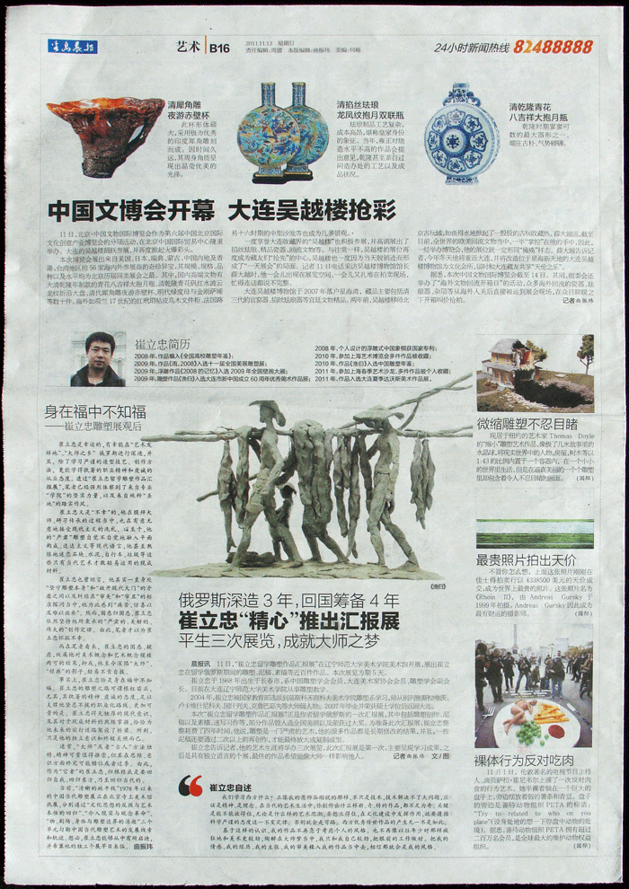 来源|2011-11-13.半岛晨报(B16).崔立忠“精心”推出汇报展/身在福中不知福/崔立忠自述 图文:张可隽