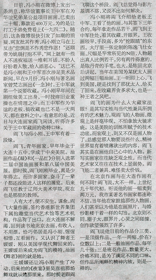 文章《徘徊在写实与当代之间——读阎飞画作》(张济 文)