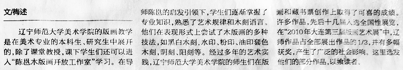 《大连日报》报道美院“陈邕木版画开放工作室”并选登师生作品