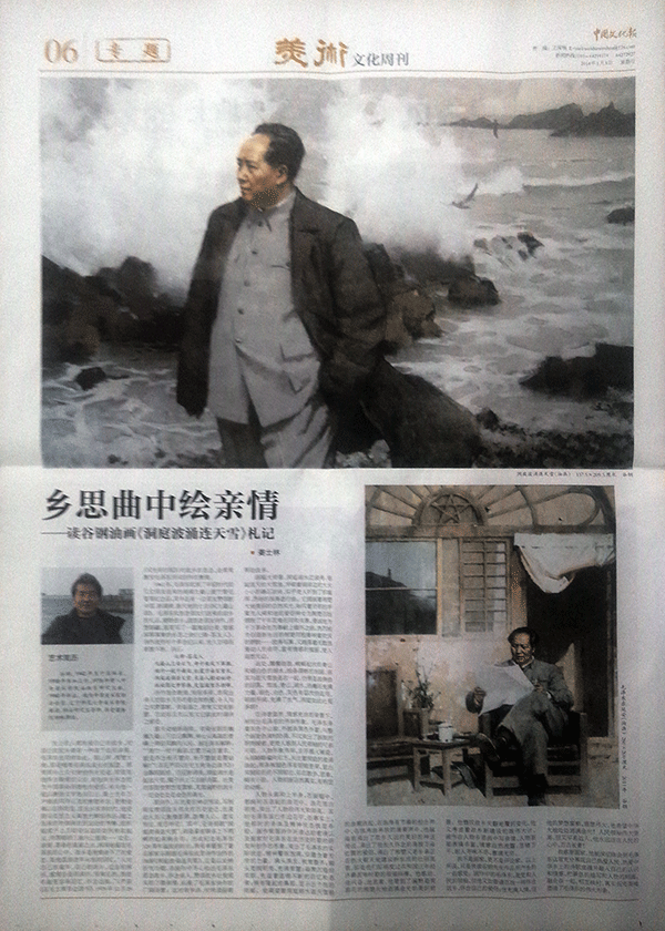 《中国文化报》2014年01月05日06(美术文化周刊)版整版发表姜士林署名文章《乡思曲中绘亲情—读谷钢油画〈洞庭波涌连天雪〉札记 》及谷钢教授艺术简历和油画作品。