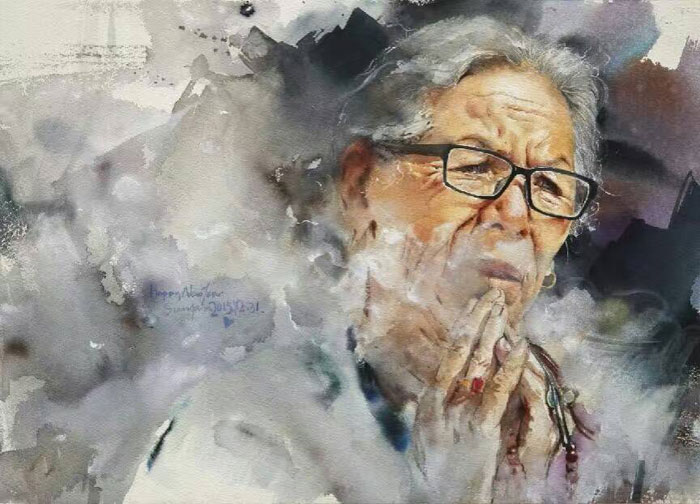 ·水彩画《祈祷》入选“第48届美国西部水彩画会国际评审展”(全球共入选100幅)