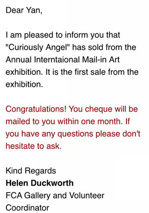 ·水彩画《好奇天使》入选加拿大联邦美术家协会主办的“2016年国际邮寄艺术展”