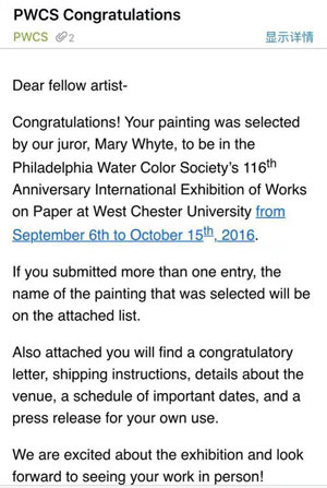 yl8858永利集团青年教师孙妍近期创作状态活跃,从2016年6月21日至7月25日,她接连收到六项北美和港台地区机构主办的国际性画展入选通知函。