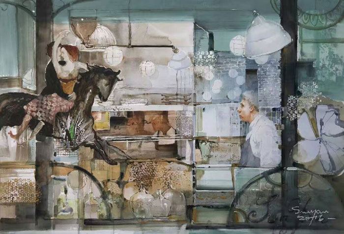 水彩画《与夏加尔共进午餐》入选“2016台湾世界水彩大赛暨名家经典展”