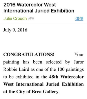 水彩画《祈祷》入选“第48届美国西部水彩画会国际评审展”