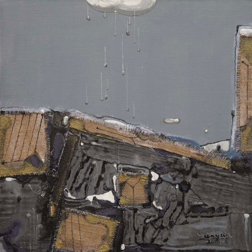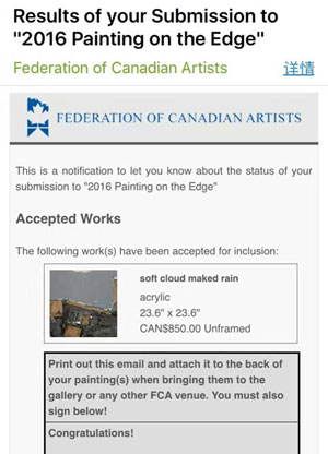 综合材料作品《雨做的云》入选由加拿大联邦美术家协会举办的“2016边缘绘画作品展”