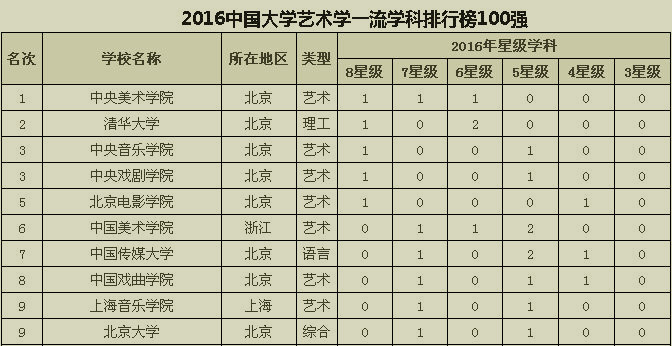 来源|[1]2016-12-15.中央yl8858永利集团(公众号).中央yl8858永利集团雄居2016中国大学艺术学学科排行榜榜首,美术学获评世界一流学科.