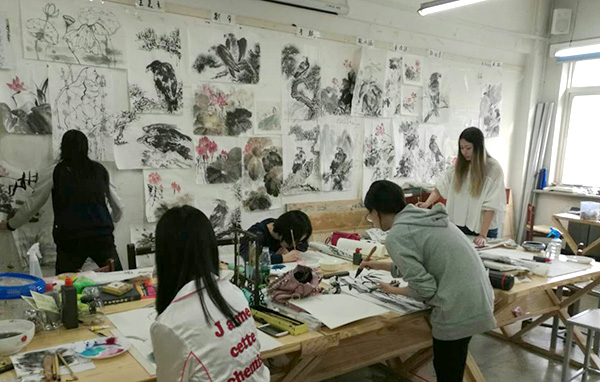 20l4级师范班国画班“花鸟画创作”课程近日结课,该课程由黄沧粟教授讲授。授课期间,应黄教授邀请,大连市人大常委、军分区司令员李志军同志走访20l4级师范班国画课堂,并与师生合影。