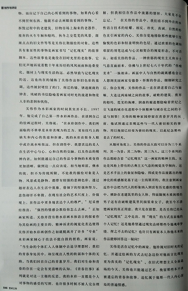 《艺术工作》2017年第3期《献给旧时光的礼赞——论关伟水彩画中的“记忆现实”》
