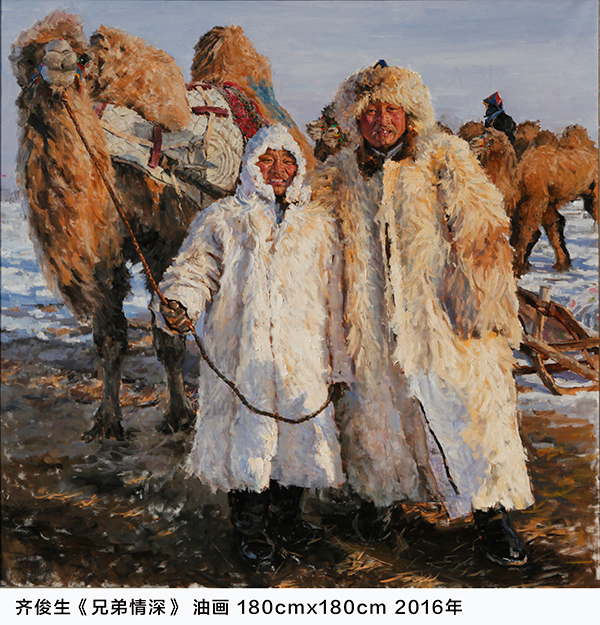 以蒙古族风土人情为题材的人物写生与创作,一直是画家艺术创作的重要内容。他将视线投注于那些有着极强地域特点和民族特色的北方草原生活与人物形象上,因为有着比较深厚的生活底蕴,加之对那片熟悉的热土保持着无尽的眷恋之情,所以这一题材他表现起来更加得心应手,自然真切,油画作品构图和谐饱满、造型扎实严谨、色彩深沉厚重,笔触粗犷有力、人物形象生动传神。