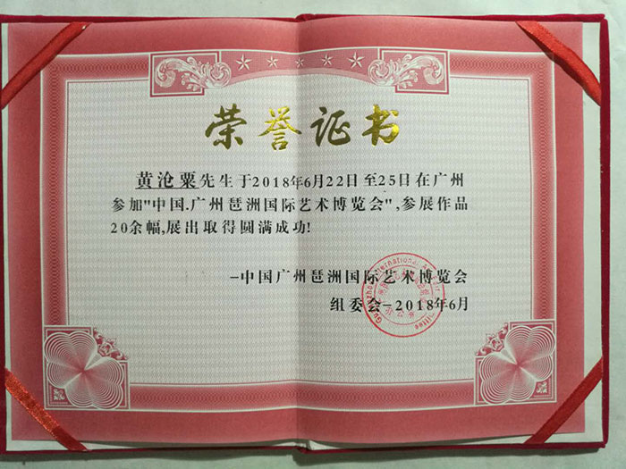 2018年6月22-25日“中国·广州琶洲国际艺术博览会”荣誉证书