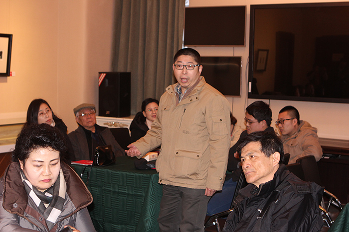 2018年1月10日 展览开幕式-3 陈邕教授在研讨会上介绍辽师美院藏书票创作的开展