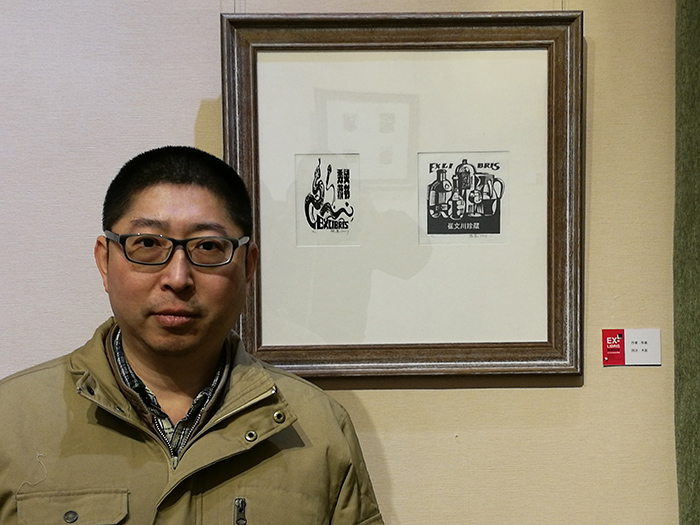 2018年1月10日 展览开幕式-6 李建华副教授与藏书票爱好者交流