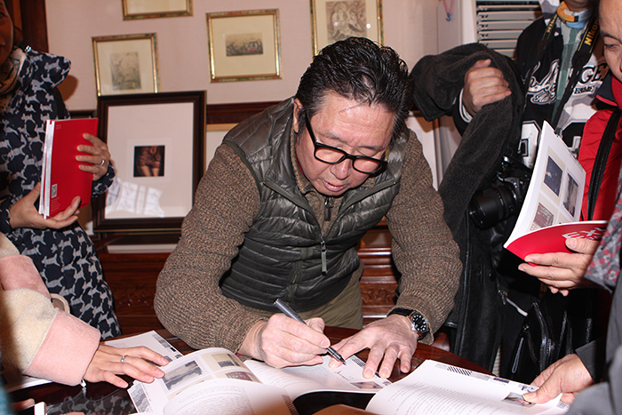 2018年1月10日 展览开幕式-7 李建华副教授为藏书票爱好者签名