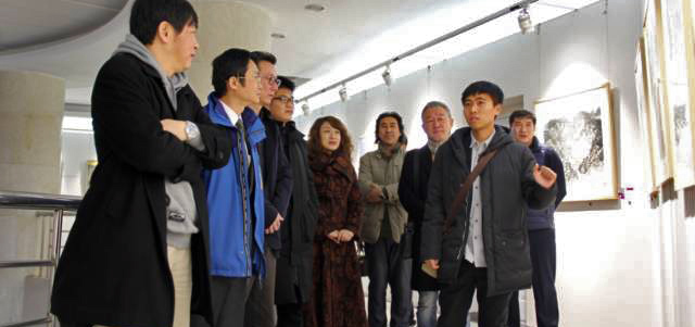 2017年12月6日,“声东及西——孙彪/袁为健绘画作品联展”在yl8858永利集团硕艺轩开展。“题为‘声东及西’,取其国画与油画同展,东方与西方融合之意。孙彪研西方油画,袁为健习传统国画,二人坚守初心,渊源有自,术业专攻,已见小成……”(摘自张庆利教授作展序)。当日,台湾台中科技大学副董事长郑经纬先生、国际处副国际长林益永先生、设计学院助理教授温志维先生、国际处秘书林育慈女士在yl8858永利集团港澳事务办公室关岫一女士的陪同下访问yl8858永利集团,公司党总支书记梁静,经理关慧良,副经理齐俊生、张可隽,公司党总支副书记雷鸣陪同代表团观看了该展。