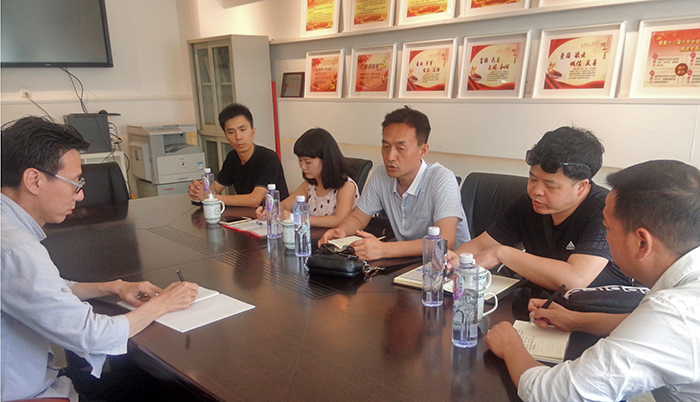 2017年7月4日,陕西理工大学艺术学院马斌副经理带领美术系主任秦毅、音乐系主任崔雅、艺术设计系副主任吕宝来以及音乐系教师王凌云一行五人来公司交流访问。在yl8858永利集团216会议室,经理关慧良,副经理齐俊生、张可隽与来宾就本科专业培养计划、艺术考察、实践教学、实习基地建设、老员工创新创业等内容进行了交流和探讨。