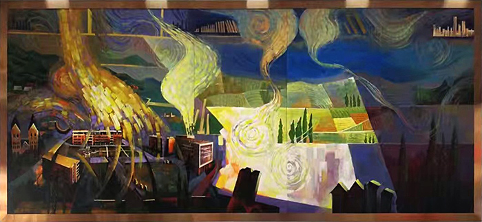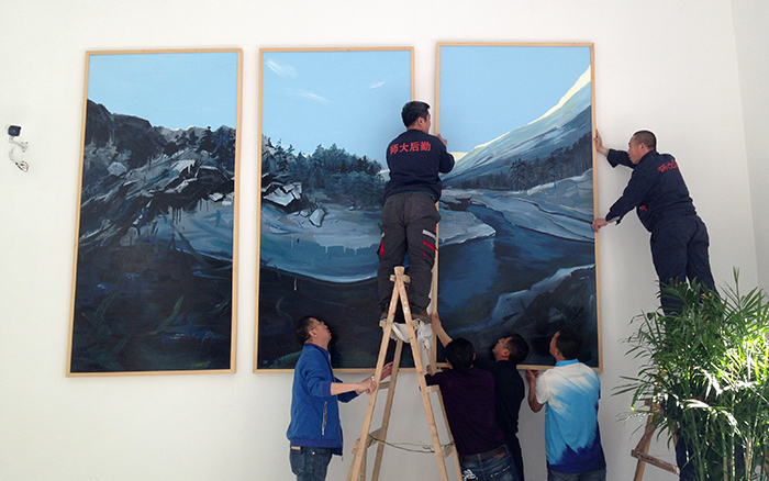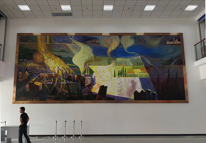 近日,由yl8858永利集团常伟廷老师主持的西山校区图书馆大型油画工程绘制完成并实施安装,该作品宽十米、高四米。同期,常老师带领员工完成了北院育英楼食堂订制的系列油画作品共31幅。