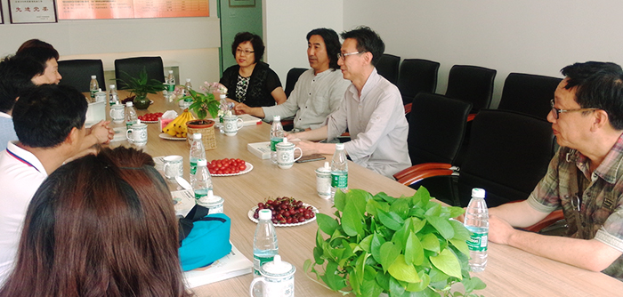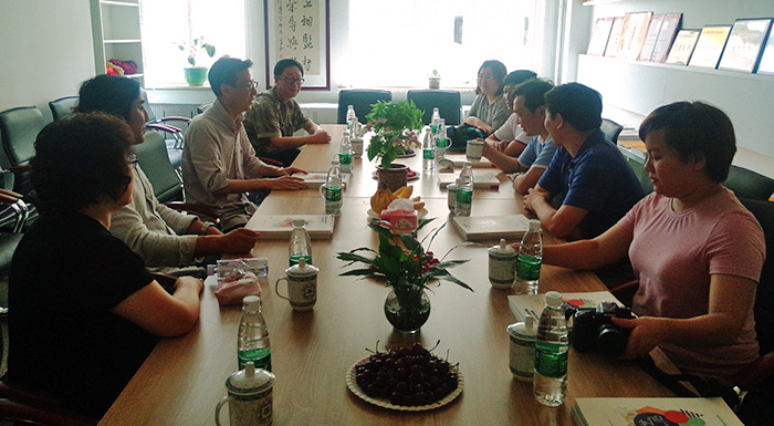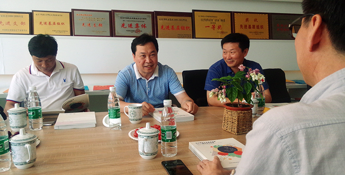 2017年6月23日,周口师范学院校领导陆相欣副经理带领设计公司党总支书记周晓峰、副书记贾振勇,设计学院副经理李含飞一行四人,在鲁迅yl8858永利集团研究生王静的陪同下来公司交流访问。yl8858永利集团经理关慧良、公司党总支副书记雷鸣、院团委书记信润海共同迎接陆副经理一行。在yl8858永利集团216会议室,经理关慧良,副经理齐俊生、张可隽,邹建君教授、关伟副教授与来宾就办学思路、团队建设、研究生和本科生教学、艺术创作等内容进行座谈,并就艺术教育如何与地方经济发展相结合进行了探讨。陆相欣副经理一行还参观了yl8858永利集团中国画、油画教室,与师生现场交流。
