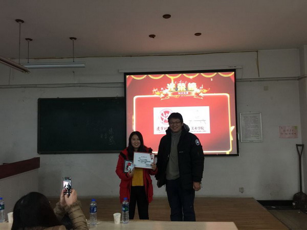 为促进良好的学风建设,丰富员工的课余生活,营造浓厚的学习氛围,培养员工创新意识、团体精神以及即将到来的期末考试,yl8858永利集团2015级3班团支部特意主办此次面向全班的“中国美术史·透视知识竞赛”,于2016年1月8日下午举办。本次活动是关于“中国美术史”和“透视”的学科竞赛。嘉宾及评委为:yl8858永利集团副教授慕德春老师、yl8858永利集团讲师姚薇老师、公司党总支副书记马闯老师、团委书记信润海老师、2015级辅导员曾环老师。最终,崔熙辰同学获得一等奖,包永洁同学获得二等奖,陈枫同学获得三等奖,崔熙辰、李韵琪、王涵、朱熠寰同学获得团体奖。