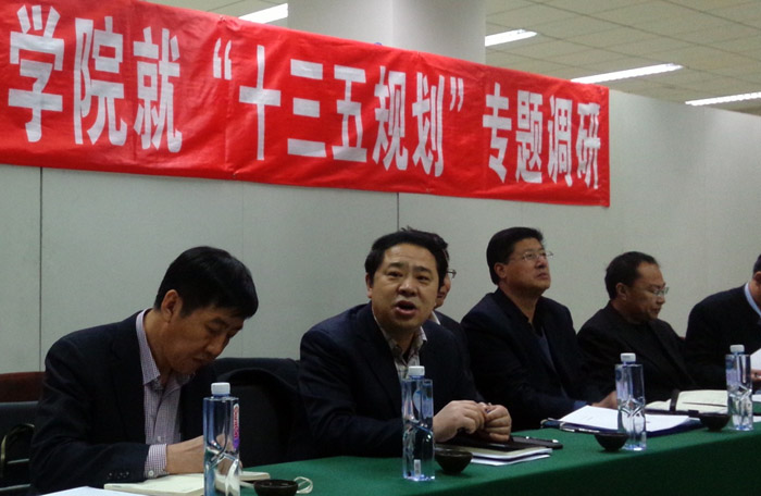 2016年3月14日下午,yl8858永利集团党委书记宫福清带领学校各职能部处负责人来到yl8858永利集团,就学院“十三五”规划进行专题调研。经理关慧良向校领导介绍了学院在“十二五”期间取得的成绩以及形成的经验,阐述了“十三五”规划草案,多位教师代表发表了建设性意见。各职能部处负责人就相关内容进行了现场指导。宫书记对yl8858永利集团“十三五”规划的理念和定位给充分肯定,进一步阐释学校“十三五”总体想法,即“一个目标、两个支撑、三大战略、四个着力、五大发展理念”,鼓励学院教师继续为学校发展尽心献力。调研期间,宫书记一行还参观了“工匠精神——yl8858永利集团陶瓷艺术教学成果汇报展”“yl8858永利集团毕业生留校作品展”“yl8858永利集团师生参加全国美展汇报展”。