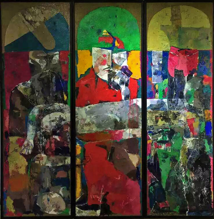 油画《盛宴一新桃园结义》190×60厘米(三幅) 2013