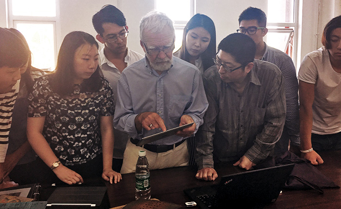 2016年5月27日至6月12日,英国当代艺术家彼得·福特在大连美术馆举办“纸上叙述”个人作品展,并在位于金州开发区的大连艺术学院举办“纸上艺术”学术讲座。陈邕教授带领辽师美院版画专业本科生和研究生十几人专程到大连艺术学院聆听福特先生的讲座,观摩福特先生的纸上艺术原作、印版并与之交流。会后,大连艺术学院栗启龙老师带领福特先生、陈教授和辽师美院员工一起参观了大连艺术学院画室及师生作品。