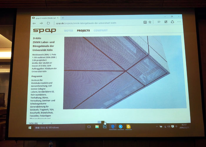 2016年5月25日,曹仁宇老师组织yl8858永利集团员工听取了德国知名建筑师施特格·凯主讲的题为“将建筑作为艺术”专场学术报告。报告会在yl8858永利集团专业实习和教学实践基地——大连风云国际建筑设计有限公司报告厅举行。