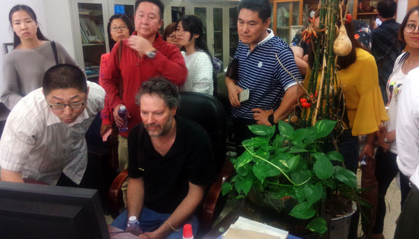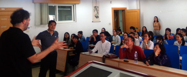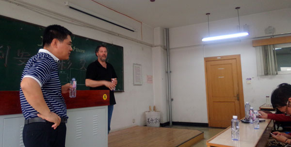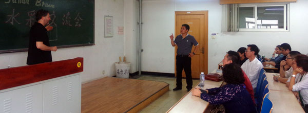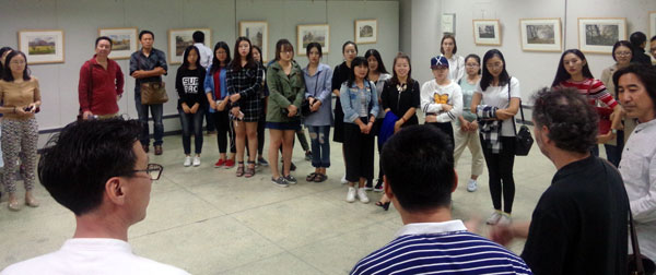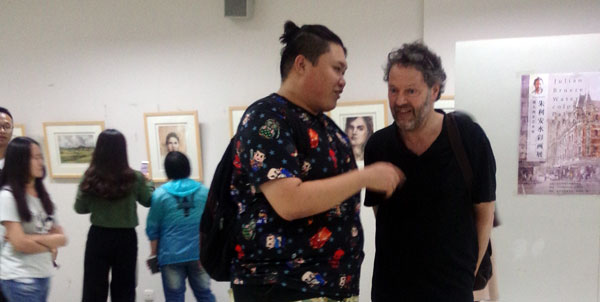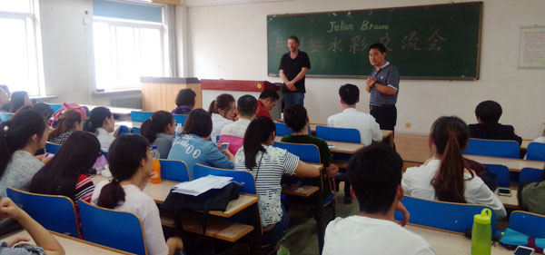 9月27日下午,关慧良经理请朱利安先生和孙永君主任为yl8858永利集团研究生进行专业外语教学,同美院教师围绕水彩画创作进行创作研讨。陈邕教授向朱利安先生介绍了yl8858永利集团教师绘画作品,对中西水彩画创作风格进行了延伸探讨。