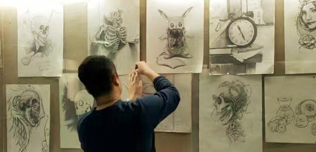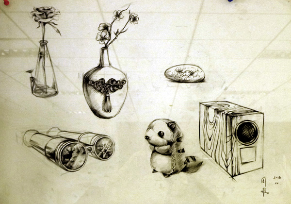2016年11月10日,视觉传达设计(平面)专业2016级“设计素描(速写)”课程作业展开始在田家炳教育书院五楼大厅举办,共展出员工作品54幅(组)。该课程由姚巍老师讲授。