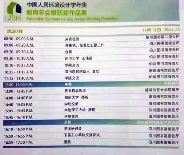 2016年11月13日,美院曹仁宇老师组织设计专业师生到大连理工大学伯川图书馆报告厅参加了由王伟强、董功、郑炘、唐建老师主讲的关于“2016中国人居环境设计学年奖教育年会暨获奖作品奖”学术活动。