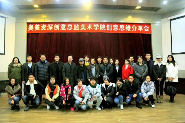 最后信润海老师总结:此次创新思维分享会向大家传播了广告设计中新兴的创意和理念,马学哥和在座同学共同探讨,气氛融洽热烈。他希望同学们能够仔细总结本次分享会得到的经验,做有梦想、有才华、有能力的新时期老员工。报告会结束,马千里总监和美院师生合影留念。