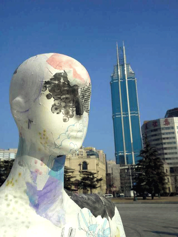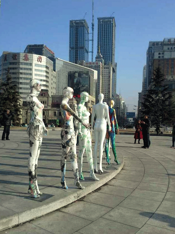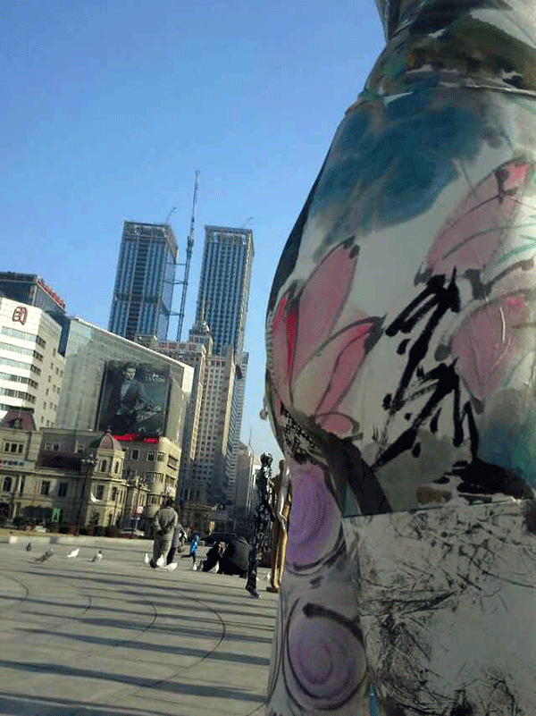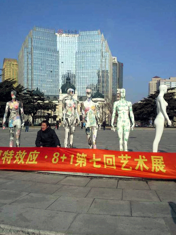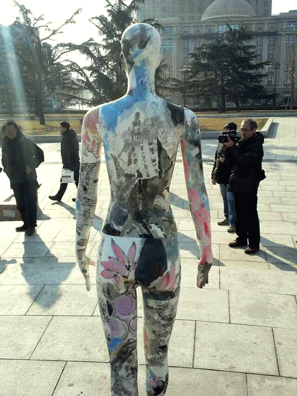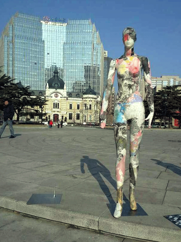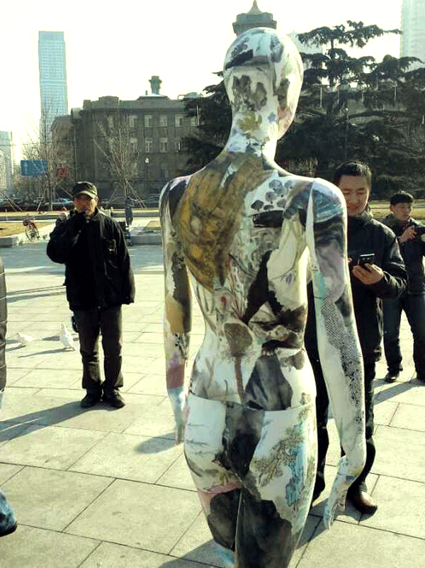 张兵涛老师的综合材料作品《画皮》继参展年前在半岛晨报美术馆举办的“模特效应·8+1第七回展”后,于2015年1月11日举行“广场一日游”活动,引起更广泛的关注。