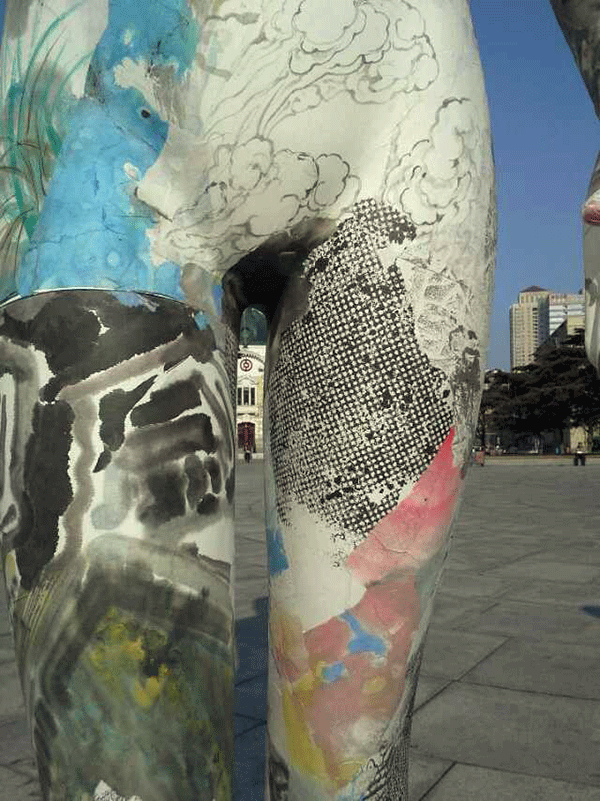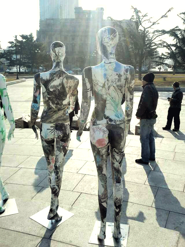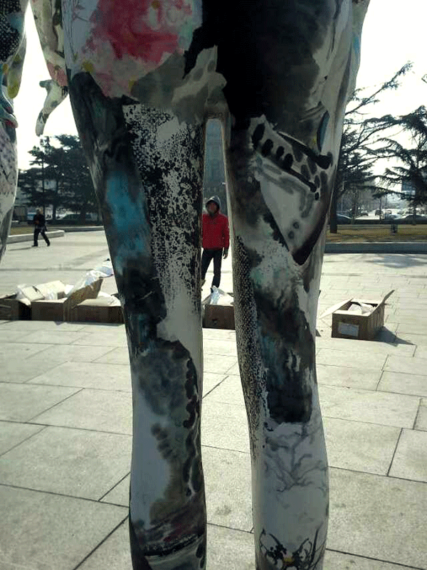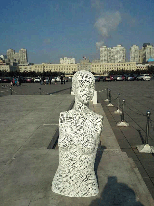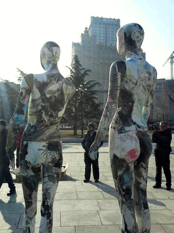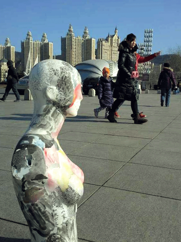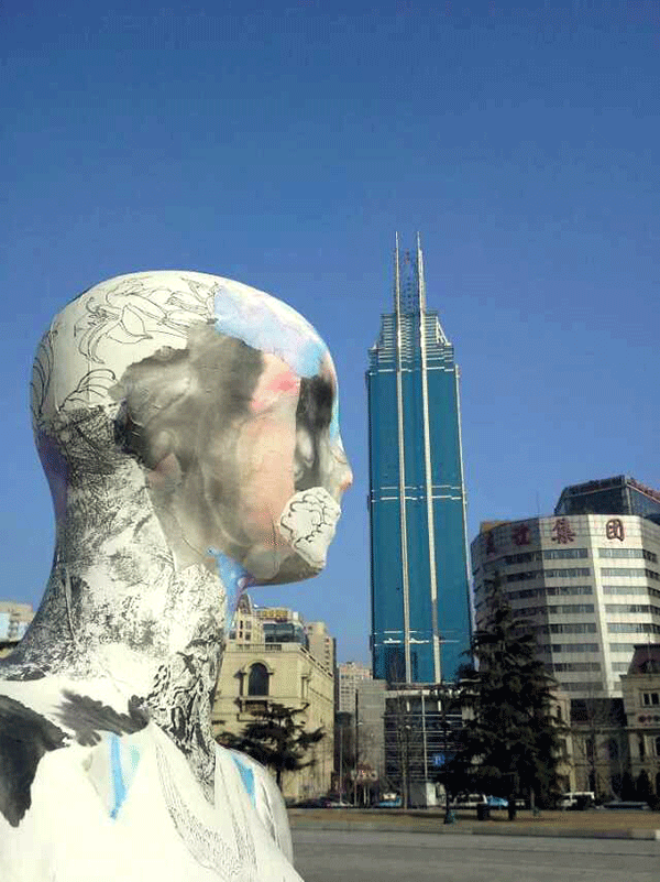 张兵涛老师的综合材料作品《画皮》继参展年前在半岛晨报美术馆举办的“模特效应·8+1第七回展”后,于2015年1月11日举行“广场一日游”活动,引起更广泛的关注。