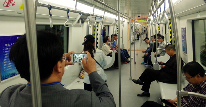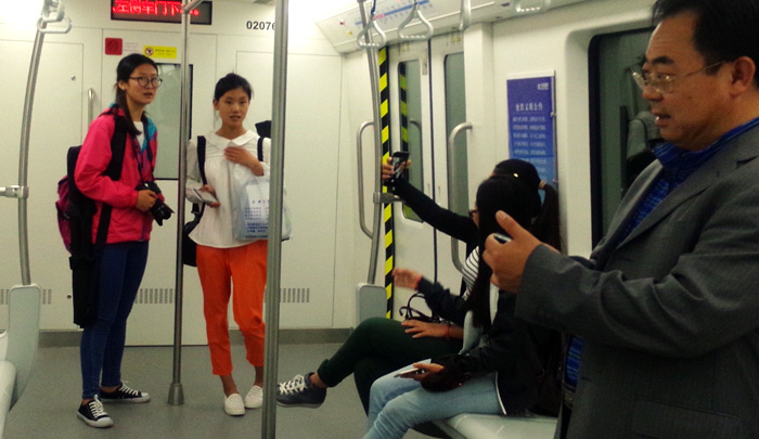 2015年5月20日,美院组织师生乘坐试运行的大连地铁,地铁站工作人员向师生介绍了大连地铁建设情况、乘坐注意事项和辽师站出入口路线。